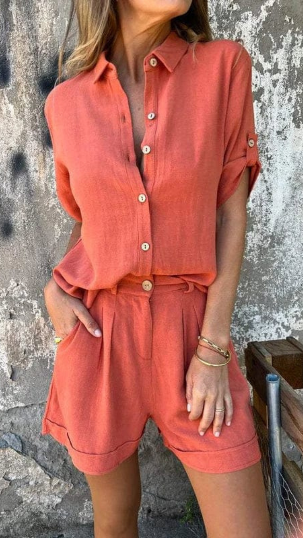 - Placer transpirable: Disfruta de la máxima comodidad del lino transpirable. Este conjunto permite que el aire circule libremente, mientras que su silueta relajada aporta un toque de estilo sin esfuerzo.