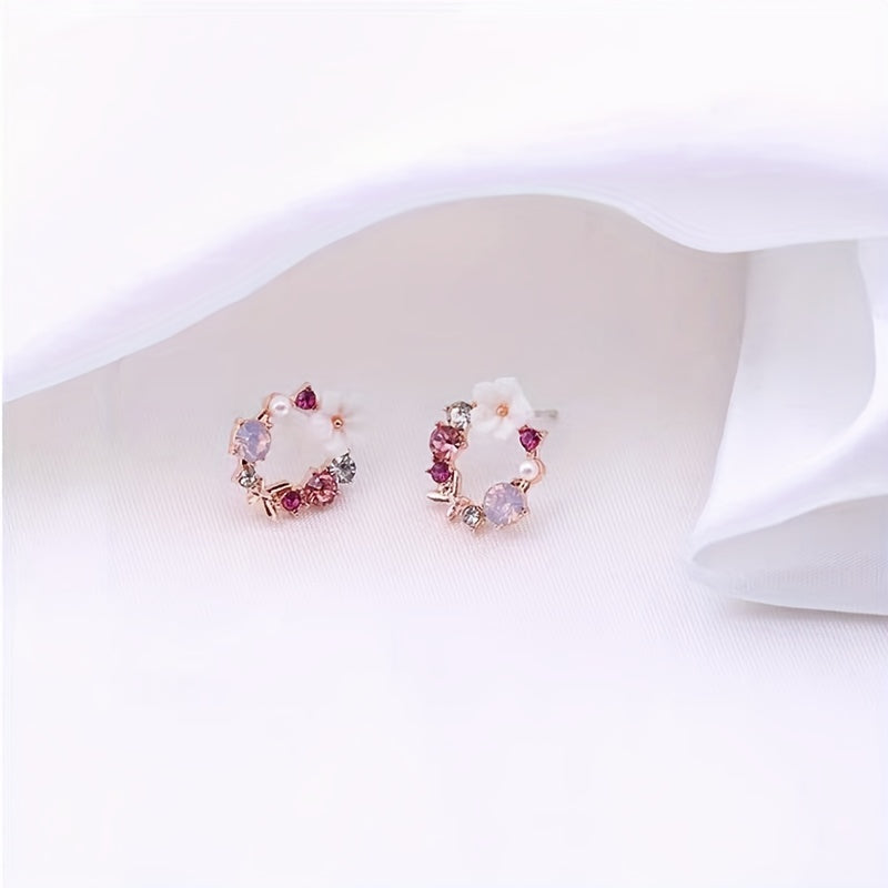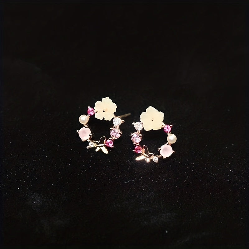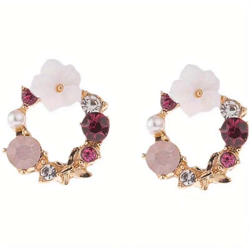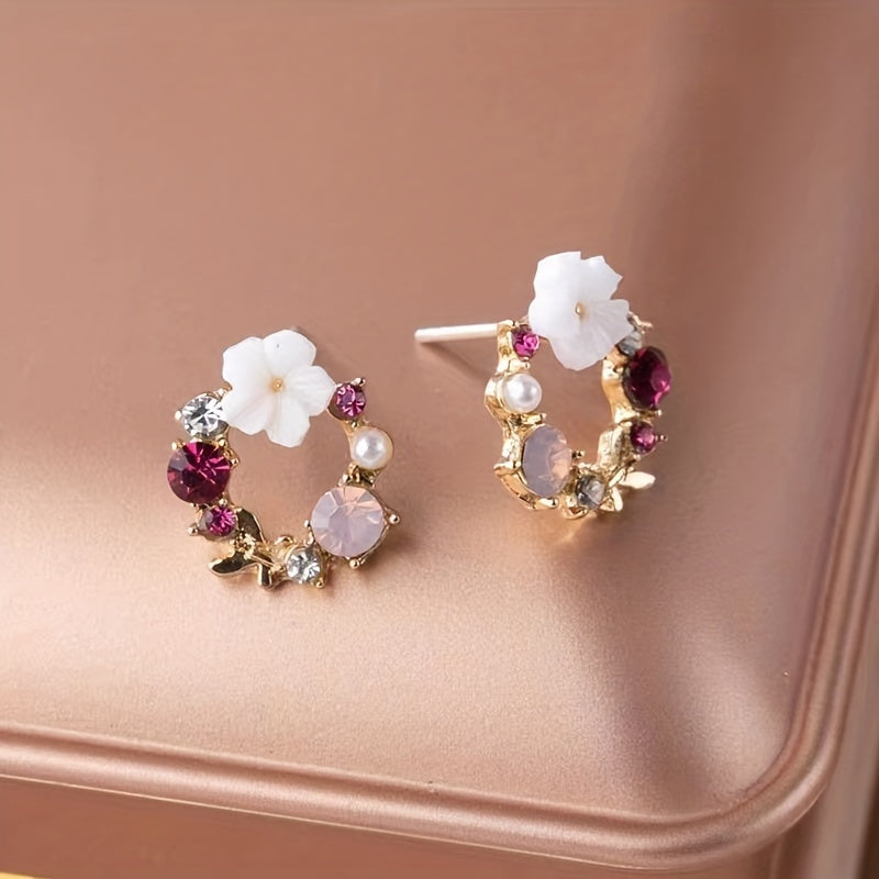 Fioralba - Pendientes de botón con motivo floral y detalles de piedras preciosas