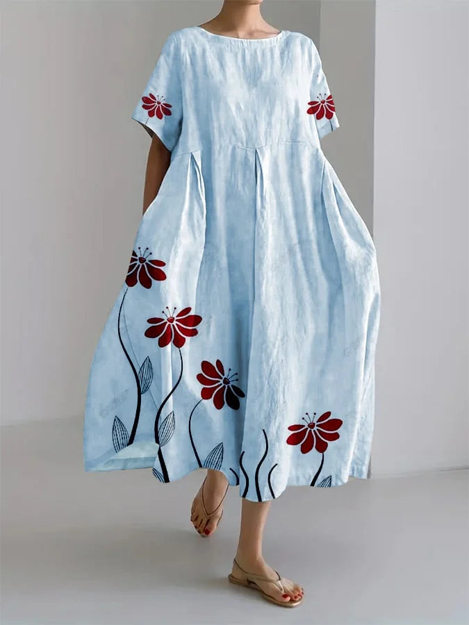 Vestido informal holgado con estampado floral botánico retro para mujer