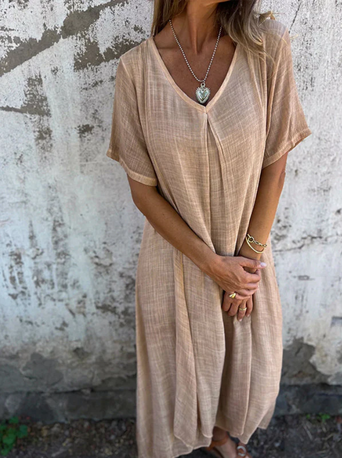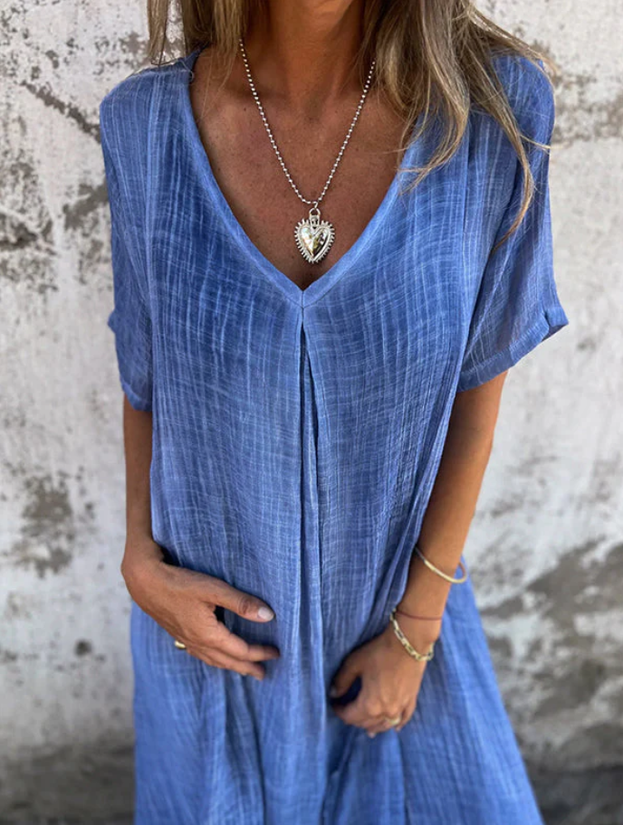 The Flora dress is a textile work of art, light and harmonious, evoking the feeling of freshness and naturalness typical of linen.
