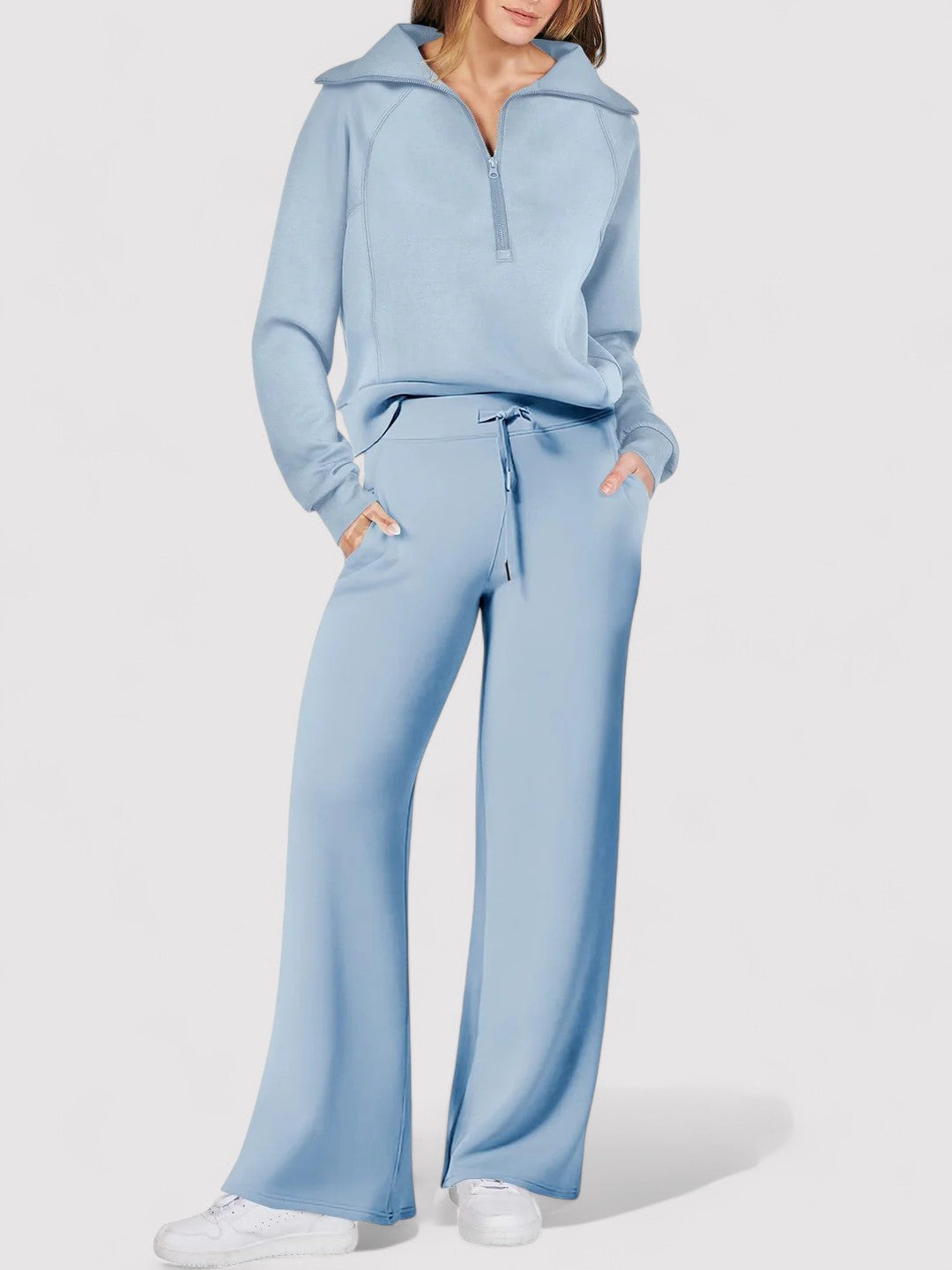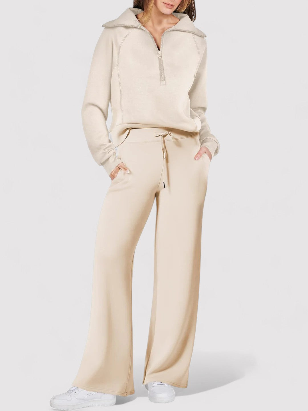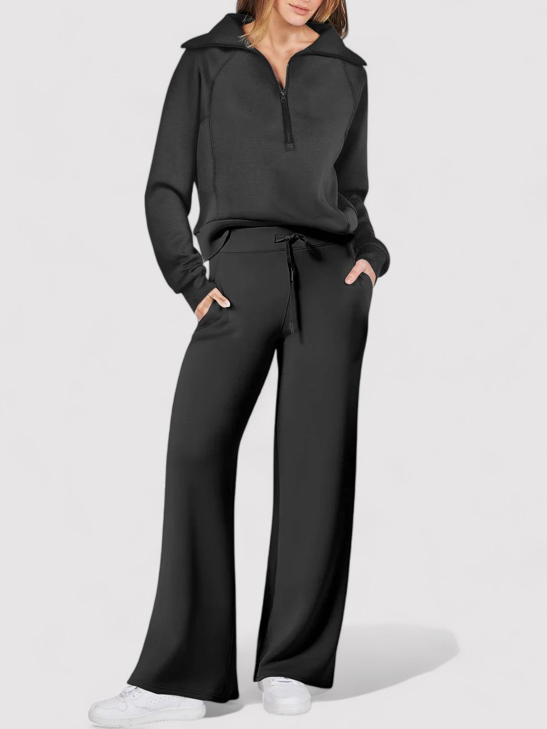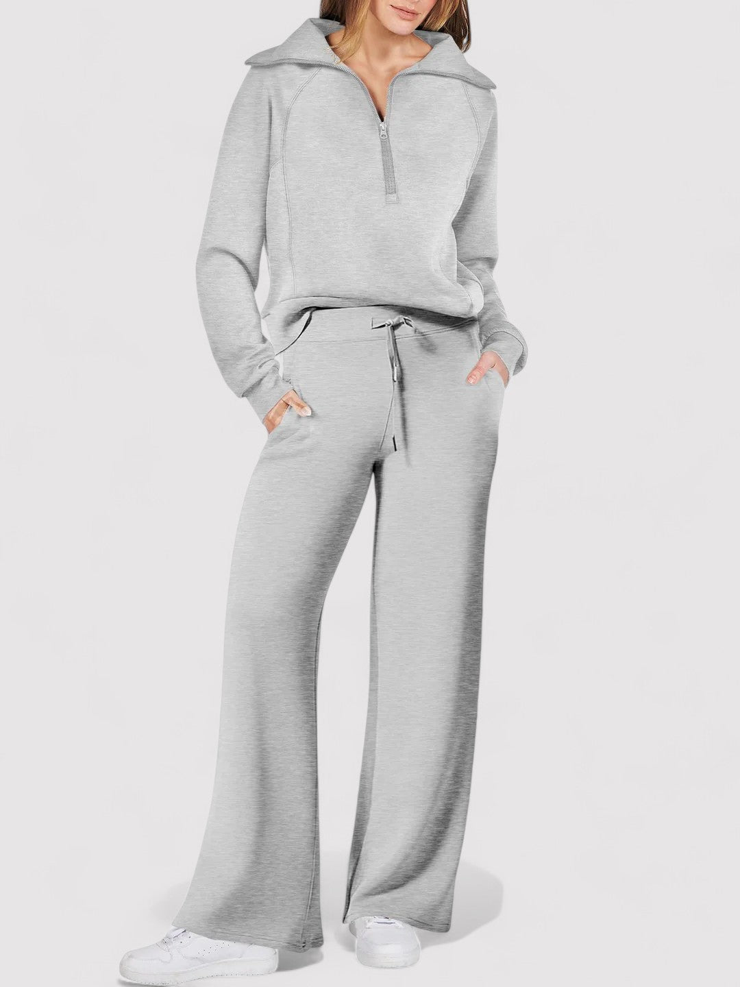 Relájate con estilo con este conjunto de dos piezas que combina una comodidad acogedora con una sofisticación natural. Su diseño versátil lo hace perfecto para disfrutar de momentos de relax en casa o para salidas informales con una elegancia discreta.