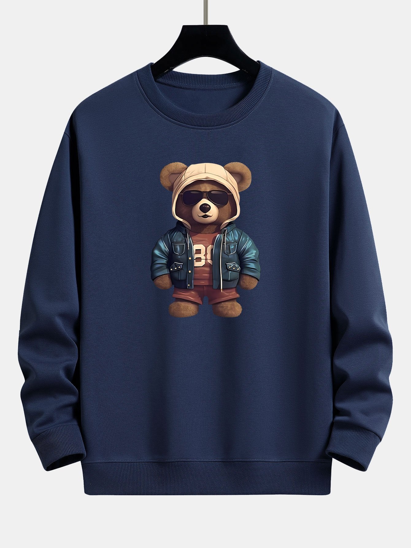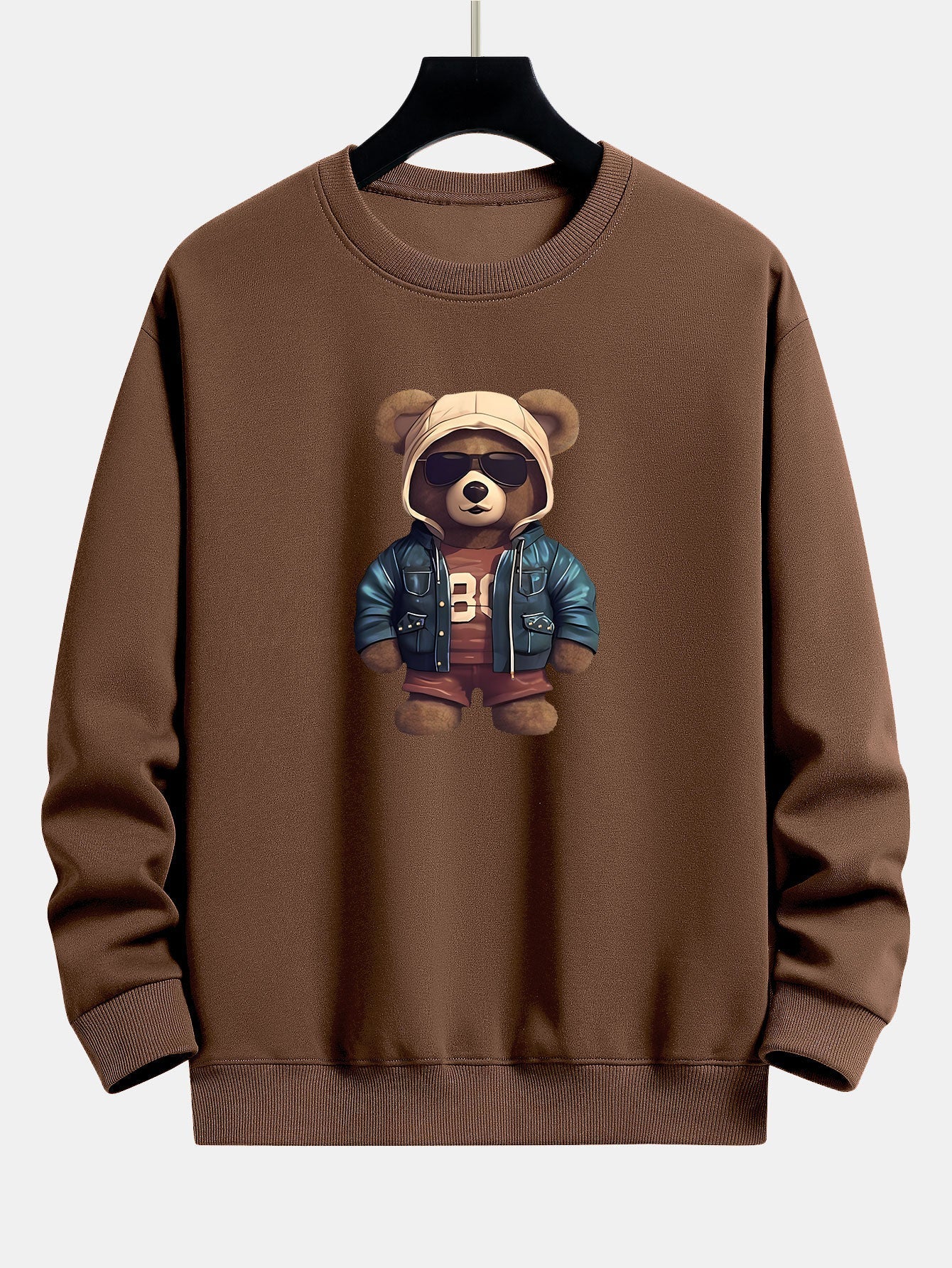 Bear In Leather Jacket Print Relax Fit Sweatshirt